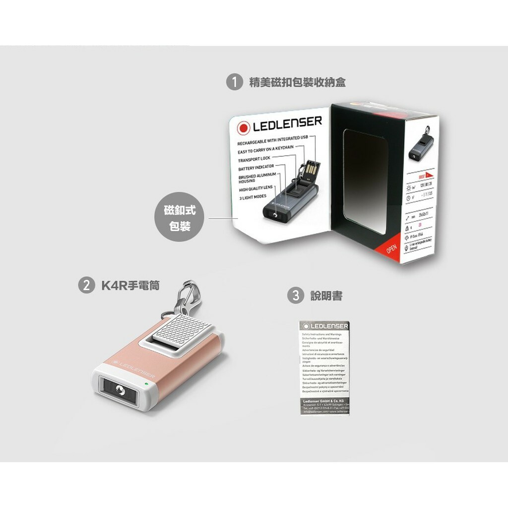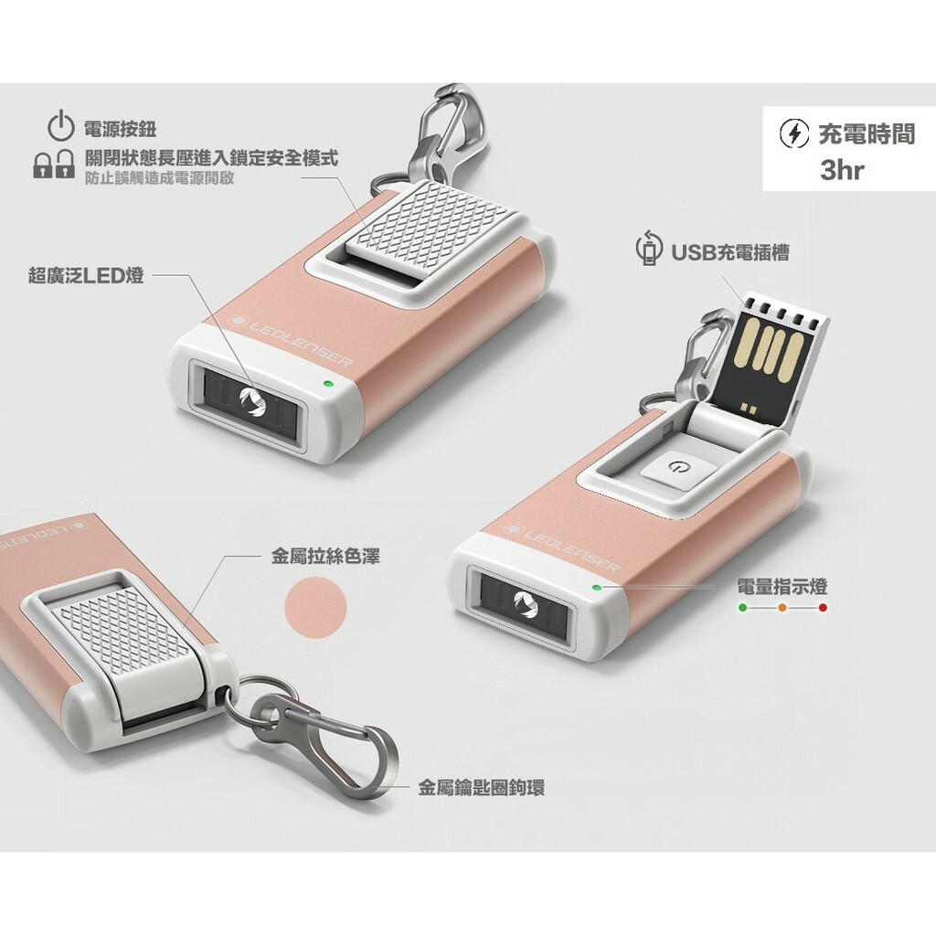 名稱:K4R 充電式鑰匙圈型手電筒-灰色、玫瑰金