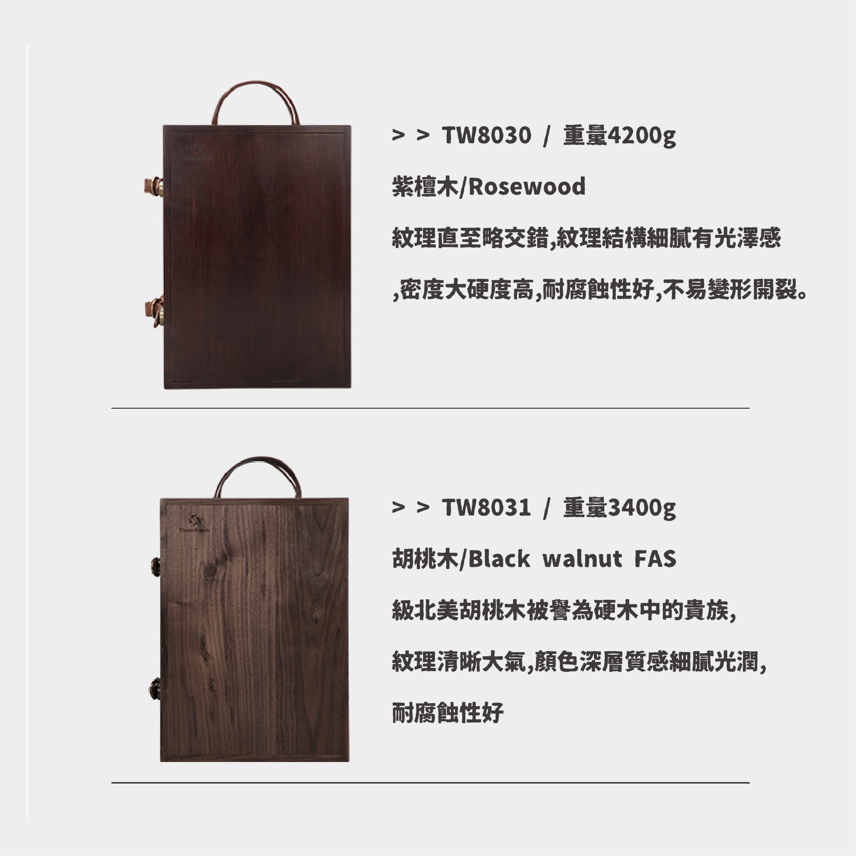 .重量:紫檀木(4200g)、黑胡桃木(3400g)