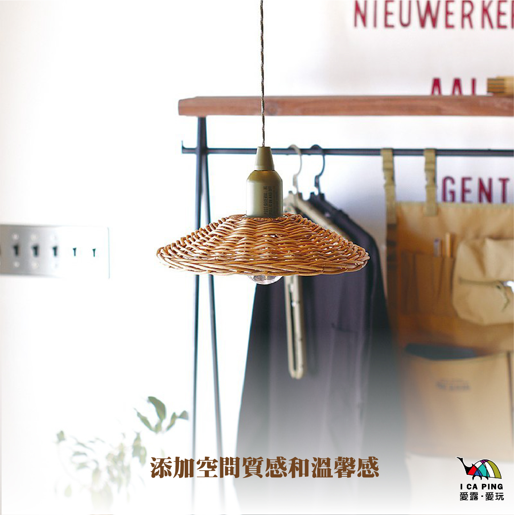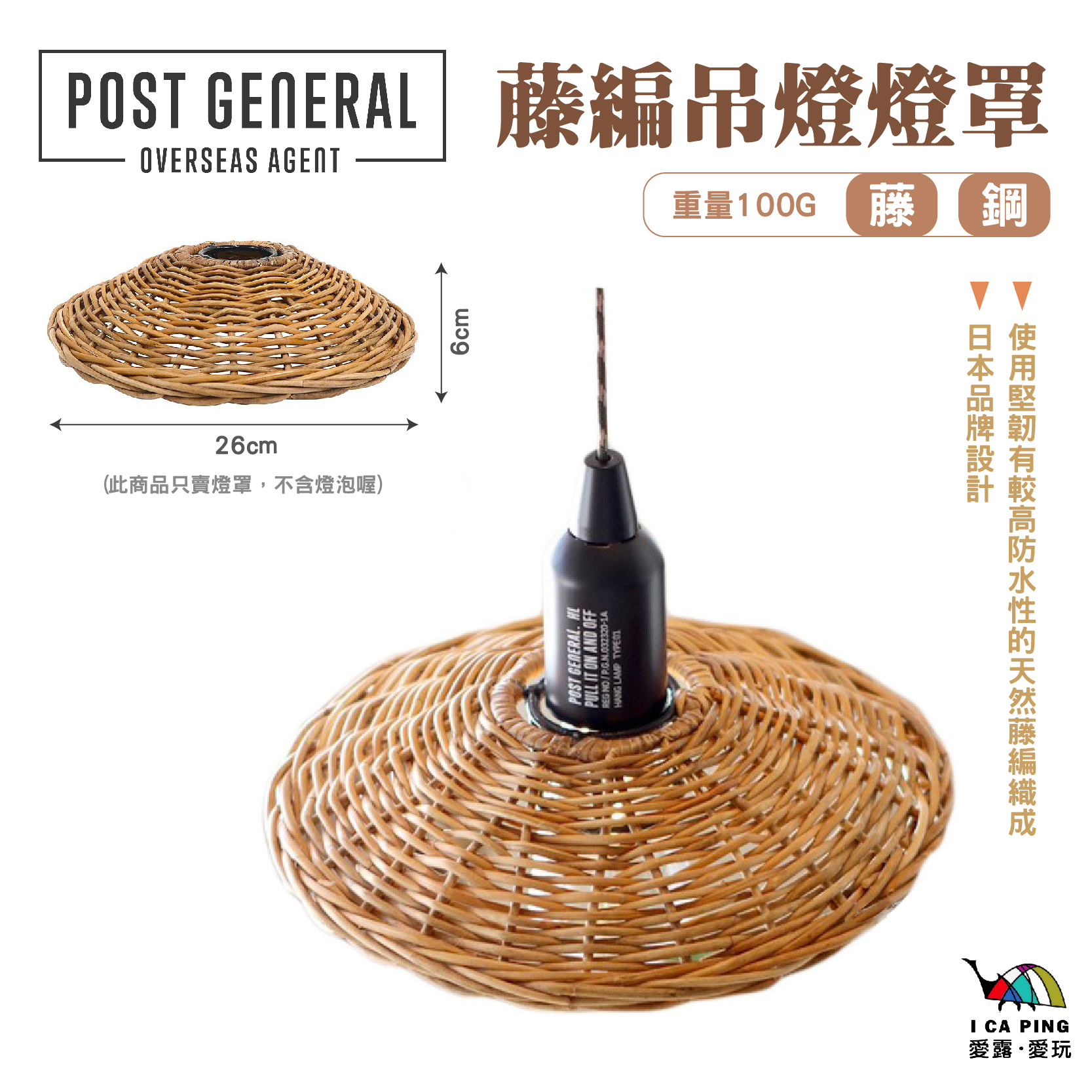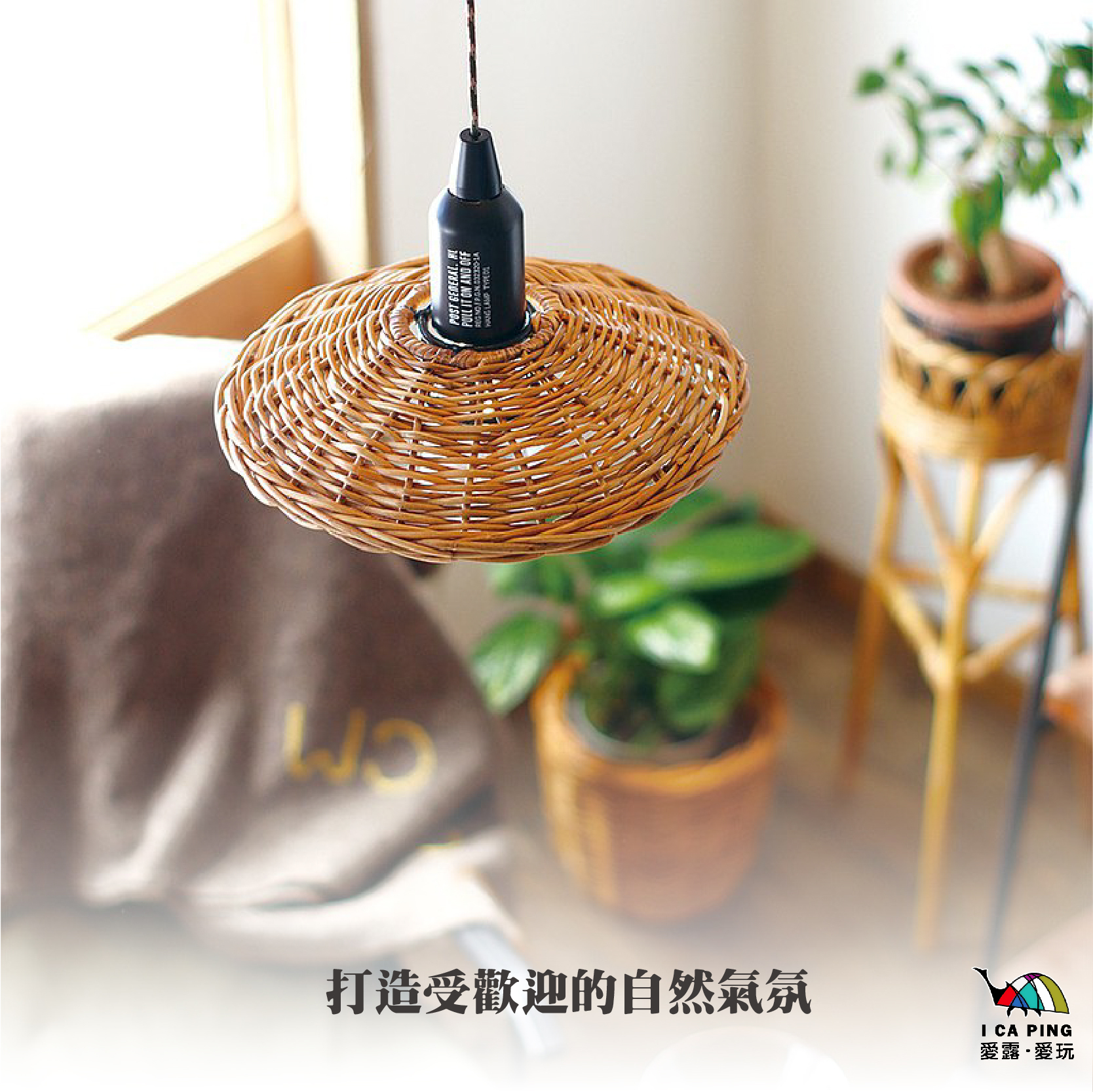 使用堅韌有較高防水性的天然藤編織成的燈罩